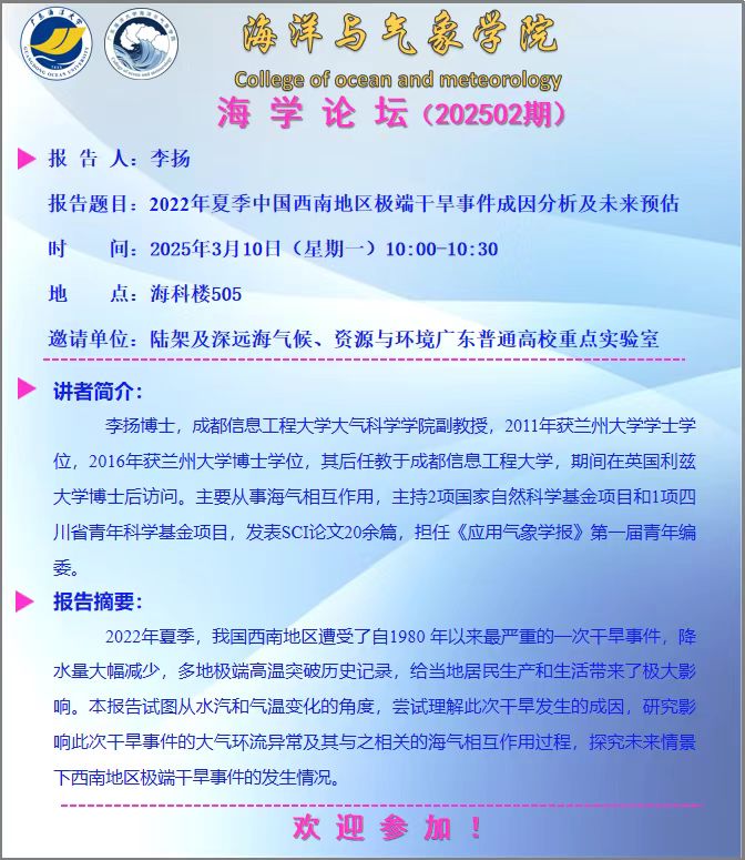 上一篇:海洋与气象学院“海学论坛”(202503期)