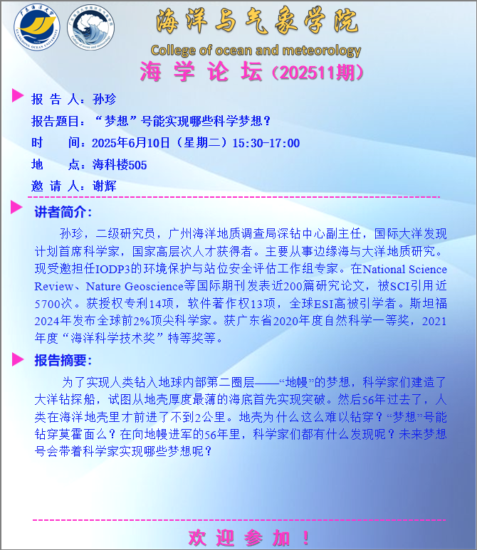 海洋与气象学院“海学论坛”(202511期)