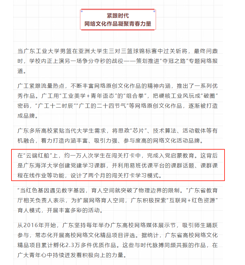 中国教育报微信公众号:既有抬头率更有点头率!广东打造网络思政课,走“新”更走心→
