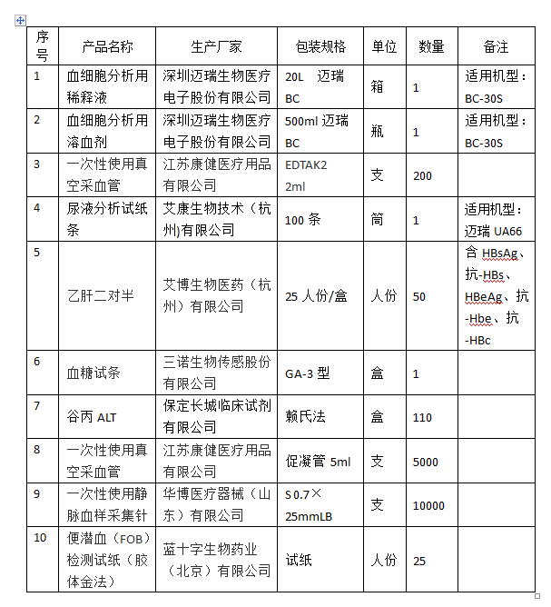 一、 采购项目名称:采购检验、B超试剂及耗材