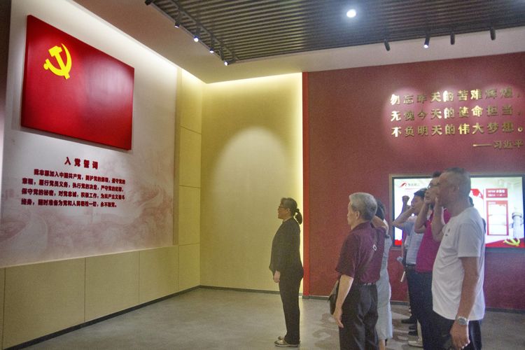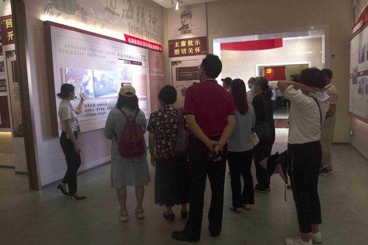 在边海红色展馆里,面对鲜红的党旗,大家举起右手庄严宣誓,重温入党誓词。随后,在离退休干部党委书记索庆华的带领下,大家观看图文实物展品,聆听英雄事迹,缅怀革命先烈,重温了那段波澜壮阔的峥嵘岁月,深入体会到那种边海党支部战天斗地、党群连心、勇于进取、永葆本色的边海红旗精神。