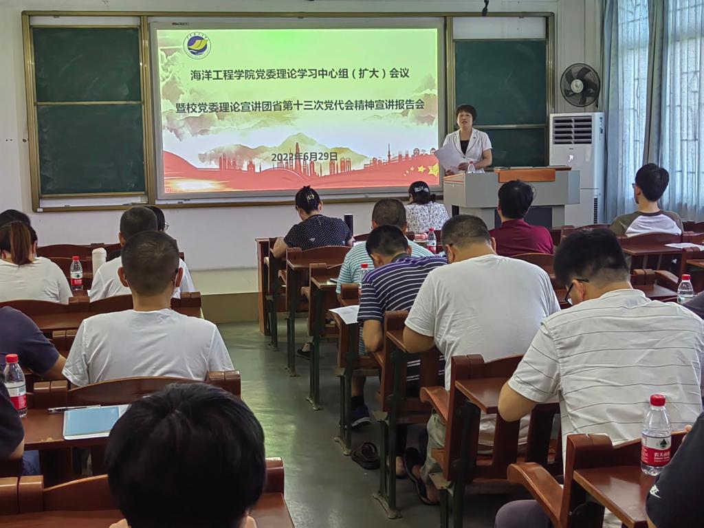 6月29日下午,海洋工程学院邀请学校党委理论宣讲团成员、马克思主义学院教授孙淑秋在海滨校区教学楼410室为学院全体教师、学生党员宣讲省第十三次党代会精神。学院党委书记邓伟主持宣讲会。