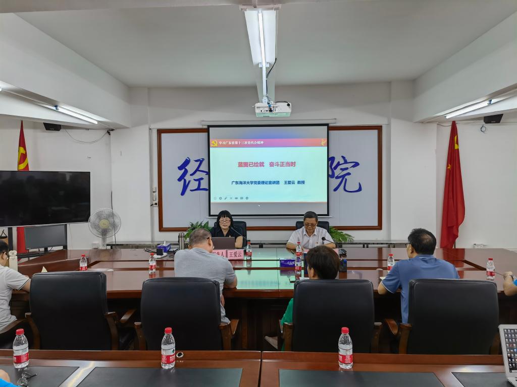 为深入学习贯彻广东省第十三次党代会精神,推动学院各项工作取得更大实效,6月29日下午,经济学院于广学楼718会议室召开了省第十三次党代会精神学习报告会。学校党委理论宣讲团成员、马克思主义学院王爱云教授受邀作专题辅导报告。学院全体教职工参加了会议。会议由学院党委书记陈创主持。