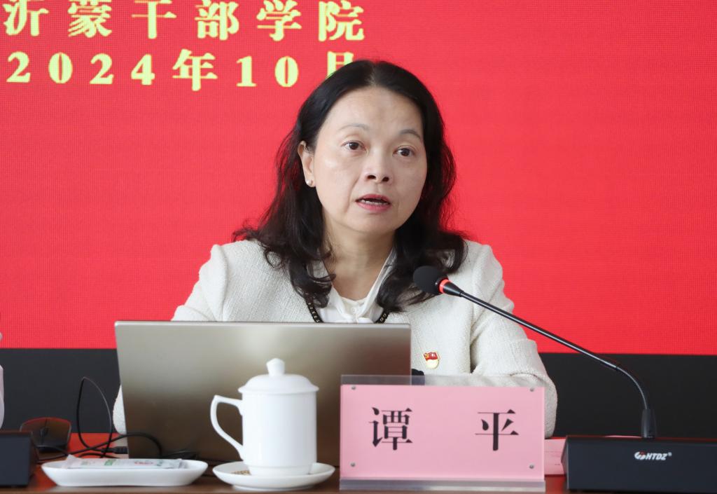谭平代表学校党委对辛勤工作在教学、科研、管理一线的学员表示问候,对沂蒙干部学院的领导、教师表示感谢,并讲授了党的二十届三中全会精神专题党课。