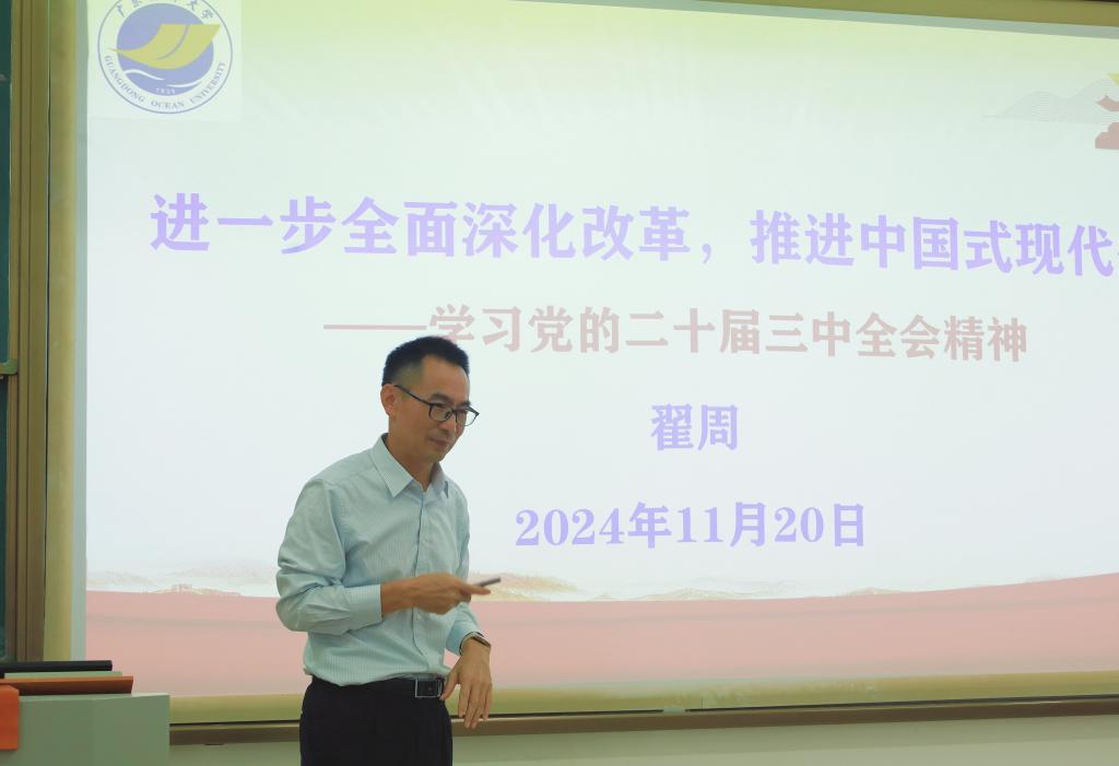 为深入学习宣传贯彻党的二十届三中全会精神,11月20日下午,中歌艺术学院“青马工程”第九期大学生骨干培训班联合学生党支部各党员在明德楼B1302教室开展学习贯彻党的二十届三中全会精神宣讲会,学院党委副书记翟周做宣讲和动员。