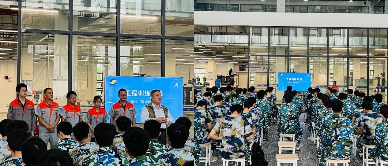 经过一年多精心筹划与紧张建设,欧冠官方网站阳江校区现代工程训练中心迎来了机械设计制造及其自动化专业首批共67名学生为期三周的现代工程实训!10月24日上午,首次开课仪式在厚为楼裙楼大堂举行,机械与能源工程学院第二行政负责人王贵教授出席开课仪式,并在会上作动员讲话。