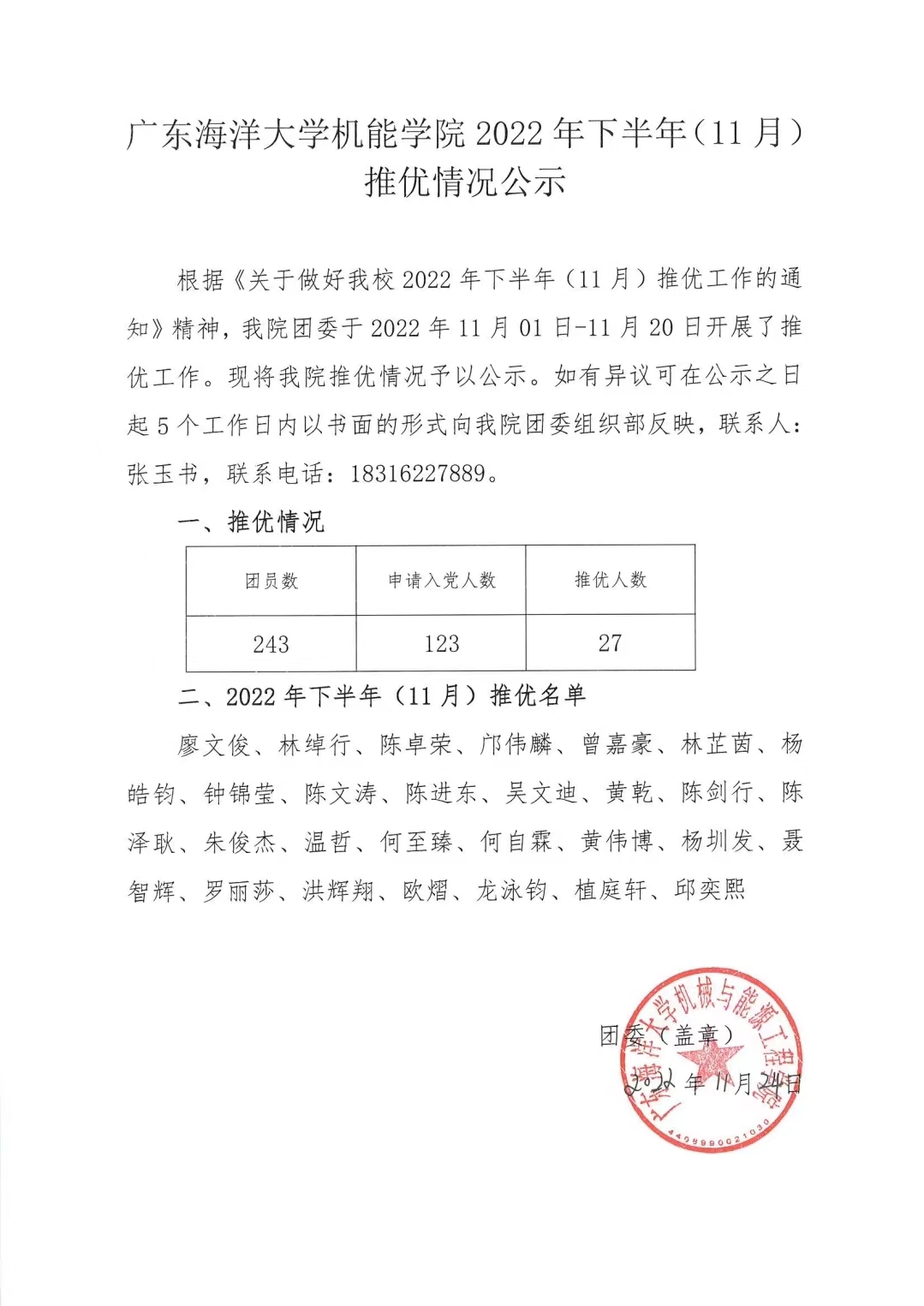 欧冠官方网站机械与能源工程学院2022年下半年(11月)推优情况公示