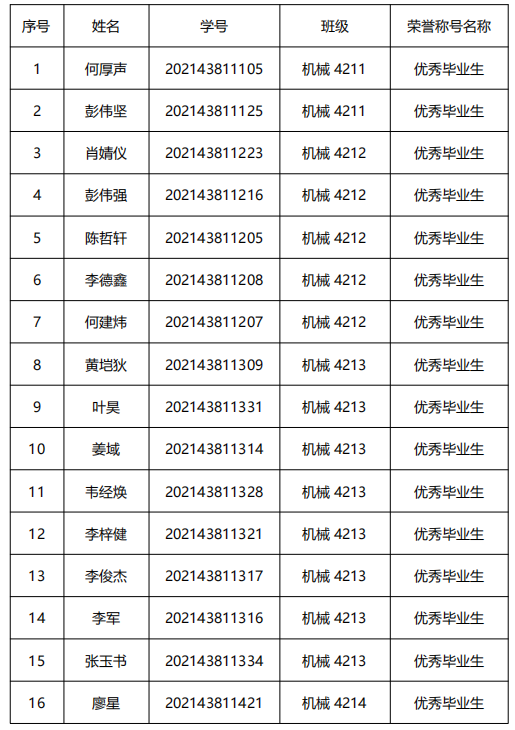 为全面贯彻执行党的教育方针,鼓励学生勤奋学习,积极向上,树立良好的学风和校风,按照《关于评选2025届优秀毕业生及征集百名优秀毕业生风采展示材料的通知》工作要求,严格依照《欧冠官方网站学生先进集体与先进个人评定办法》{校学生[2019]53号}有关评选条件,经学生本人申请,学院初评,共评选出2025届欧冠官方网站优秀毕业生拟推荐人选16名。现将名单予以公示。