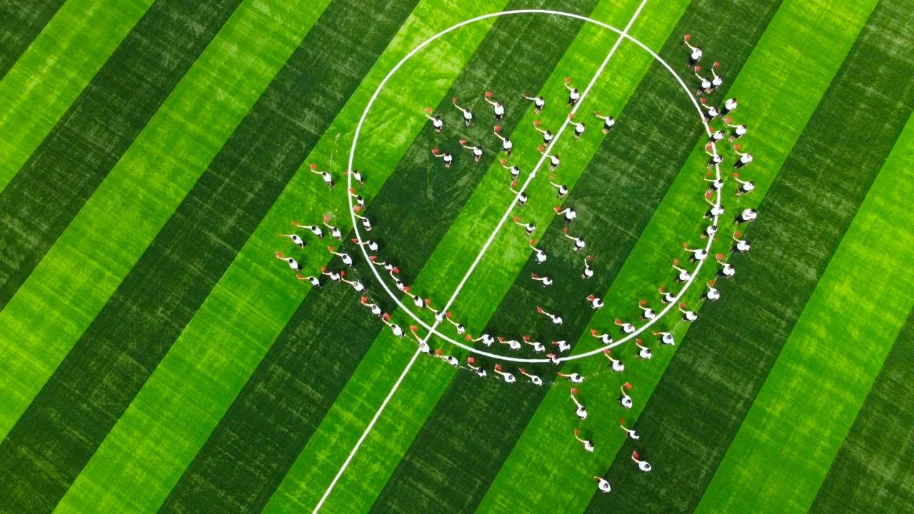 在足球场摆出党徽的形状