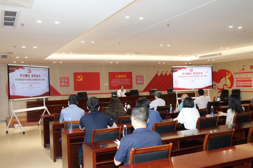 根据校区主题教育专题党课计划安排,5月17日下午,校区党委副书记、管委会常务副主任周昌仕在海纳楼520党员活动室为党员干部教师讲授主题教育专题党课。资产财务部、商学院、食品科学与工程学院全体党员参加党课学习。