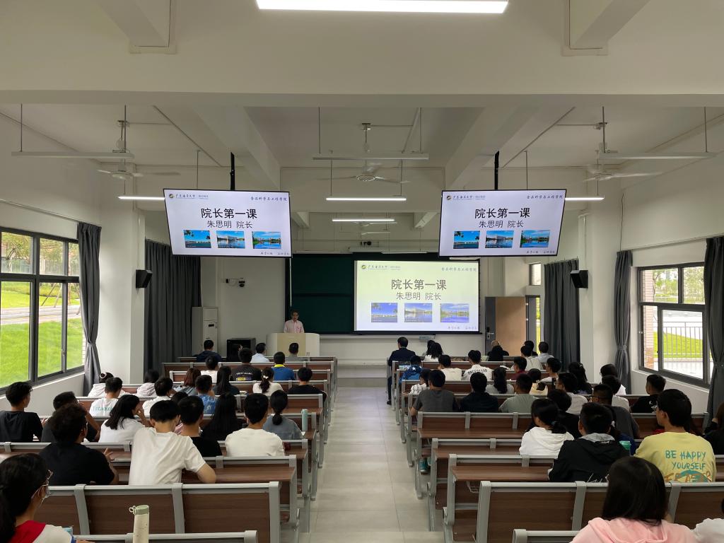 会议的第一项议程由学院行政第一负责人朱思明为新生们讲解大学的理念、精神、文化、功能、以及培养目标。同时朱思明院长还为新生讲述了年轻人读书的意义,提醒同学们珍惜大学时光,找到自身优势和天赋,用一切皆有可能的方式挑战自己,求知若渴地探索新知新思,探索未来世界。