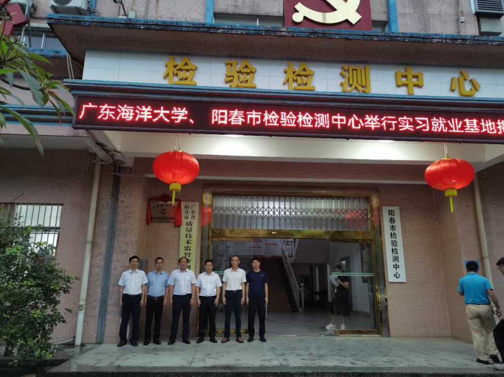 4月19日,食品科学与工程学院校外实习就业基地揭牌仪式在阳春市检验检测中心举行。校区党委副书记丁永成、学院杨新河教授、王文铎博士以及阳春市检验检测中心全体人员参加了揭牌仪式。