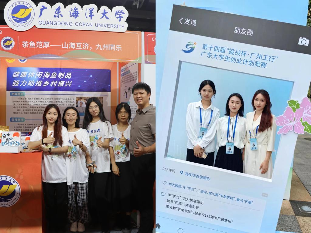 5月17-19日,由团省委、省教育厅、省科技厅、省人力资源和社会保障厅、省社科院、省科协、省学联等单位联合主办的第十四届“挑战杯·广州工行”广东大学生创业计划竞赛终审决赛在华南农业大学举行。我院学生参赛作品“茶鱼范厚-山海互济,九州同乐”在本次“挑战杯”比赛从全省157所院校的3.4万件参赛作品中脱颖而出,荣获广东省金奖。