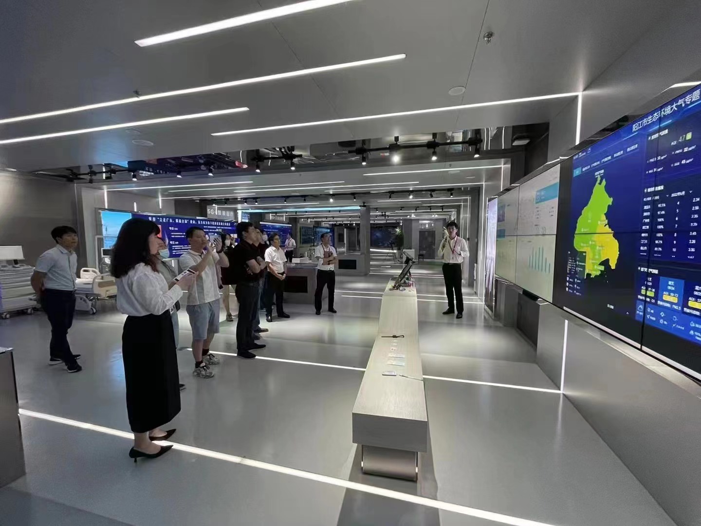 在中国联通阳江市分公司党委书记、总经理沈宏平及中国联通阳江市分公司海陵区分公司总经理黄明梅等人陪同下,商学院一行首先参观了中国联通(广东)5G数字化创新体验中心,了解最新的数字技术发展情况和广东联通在产业数字化领域取得的重大成绩,也进一步体验了精彩纷呈的5G应用场景,包括5G+智慧制造、5G+智慧政务、5G+智慧医疗、5G+智慧交通等多个场景及案例的解读,也使得一众与会人员对5G的认识更为深刻。