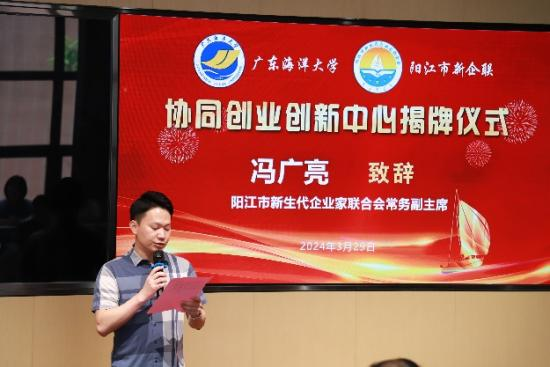 在揭牌仪式上,阳江市新生代企业家联合会常务副主席冯广亮首先致辞。他希望合作双方能够通过协同创业创新中心这个平台,整合和匹配阳江新生代企业协会的企业群体和欧冠官方网站各方面资源优势和需求,加强校企合作,努力携手培养具备专业管理素养和创新思维的卓越人才,提升商学院毕业生的就业水平,同时也为阳江地区产业发展注入人才活力。