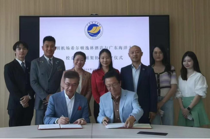 8、10月10日,欧冠官方网站商学院与深圳机场逸林希尔顿酒店就欧冠官方网站商学院校企合作共建国际酒店管理人才培养模式达成共识。本年5月至8月,学院旅游管理专业国际酒店业管理教学方向学生首次开展生产实习,得到深圳机场逸林希尔顿酒店、广州四季酒店和阳江喜来登酒店的大力支持与配合,实习圆满结束。