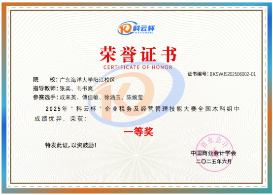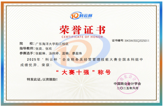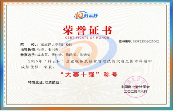 5月24日,由中国商业会计学会主办的2025年“科云杯”全国企业税务及经营管理技能大赛圆满落幕。在本次高手云集的赛事中,欧冠商学院会计学专业继去年取得“全国十强”后,今年再次成功卫冕“全国十强”团队称号,续写辉煌篇章。