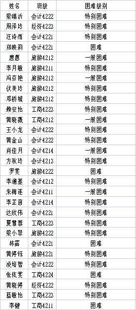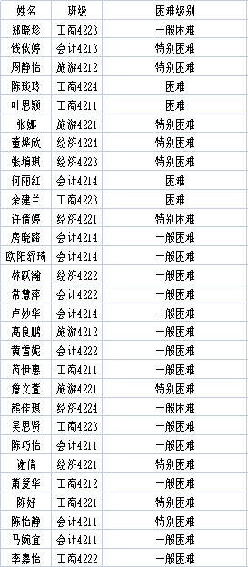 经过本人申请、评议小组评议、院系审核、学校组织交叉材料审核等过程,拟认定梁靖沂等58名学生认定为家庭经济困难学生。现进行公示,公示期为6月6日-6月11日。如有异议,请及时以电话形式向学院反馈。