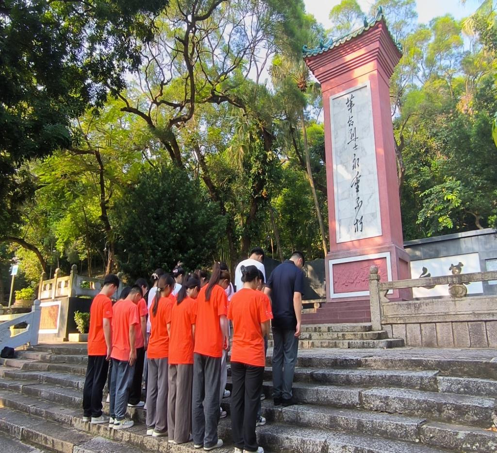 随后,商学院学生党支部书记贺震东带领队伍前往阳江市烈士陵园,并以“赓续红色血脉,强国复兴有我”为题,为参加活动的同学们上了一堂生动“行走的思政课”,带领同学们重温烈士足迹,感受先烈们英雄气概和不屈精神,进一步坚定理想信念。同学们在参观中深深地感受了英烈不惜抛头颅、洒热血的无畏精神。在烈士陵园前,由贺震东宣读悼词,全体人员列队肃立,全体人员庄严默哀并行三鞠躬礼,深沉表达对烈士的崇高敬意。默哀结束后,全体学生党员在庄严的烈士墓下重温入党誓词,立志为实现中华民族伟大复兴的中国梦贡献青春力量。