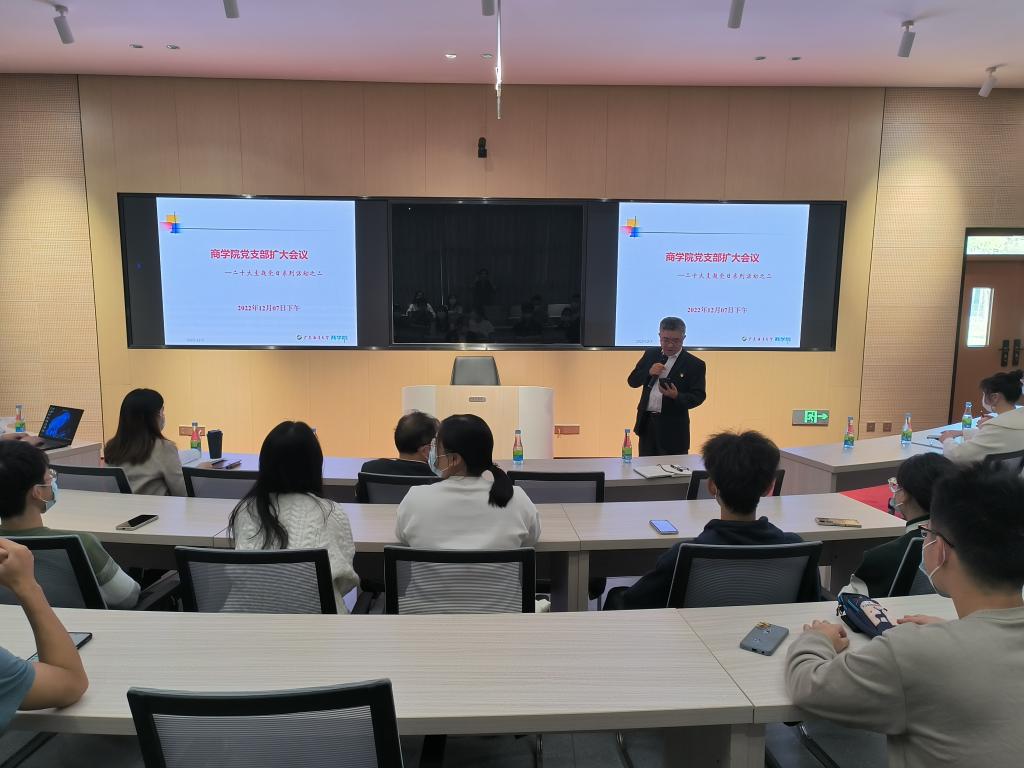党的二十大已胜利闭幕一个多月,全国上下掀起了学习二十大报告的新高潮,为响应党的号召,深入学习领悟党的二十大精神,结合《中共欧冠官方网站阳江校区委员会关于开展党的二十大精神全覆盖学习宣讲活动的实施方案》的相关要求,12月7日下午,校区党委副书记、管委会常务副主任、商学院联系领导周昌仕同志到商学院宣讲党的二十大精神。商学院党支部书记唐志军主持会议。学院全体党员,教师入党积极分子,学生团支部书记,班长共40余人参加会议。
