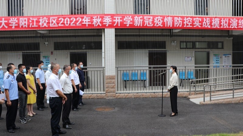 8月31日下午,阳江市副市长柯燕率市教育局、市公安局、市卫生健康局、市市场监管局、市卫生监督所等部门负责同志到欧冠区调研开学疫情防控工作并指导开学疫情防控应急演练。校区党委副书记、管委会常务副主任周昌仕,校区领导陈永强、徐兵、毛琪参加活动。校区疫情防控领导小组成员、相关单位部门负责人及各学院辅导员代表参加演练。本次演练旨在进一步提高阳江校区防范和应急处置新冠肺炎疫情的能力,有效保障2022年秋季学期...