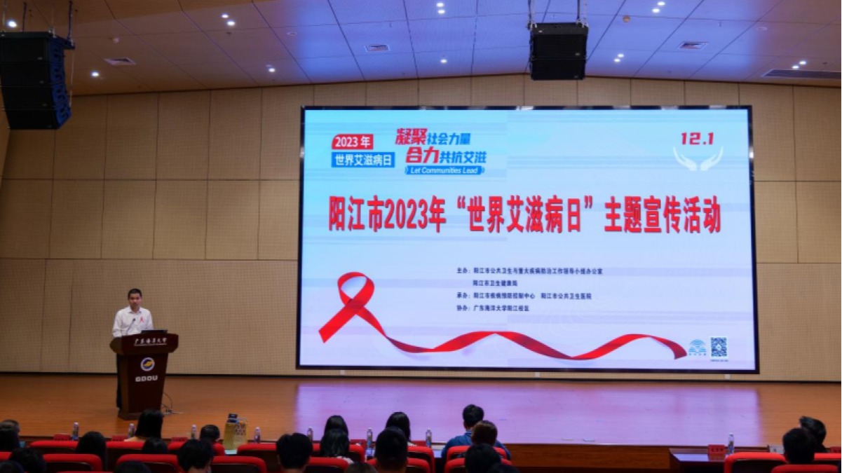 2023年12月1日是第36个“世界艾滋病日”。当天上午,阳江市2023年“世界艾滋病日”主题宣传活动在阳江校区海纳楼一楼报告厅举办。阳江市卫生健康局领导出席活动并致辞。校区后勤保障部第一负责人袁仁广、第二负责人周斌,阳江市疾控中心等单位工作人员及校区学生代表等250余人参加活动。阳江市疾病预防控制中心曾广富主任以图文并茂的课件和视频,向在场人员详细讲授了艾滋病的基础知识和预防措施等,并通过现场问答的方式,对...