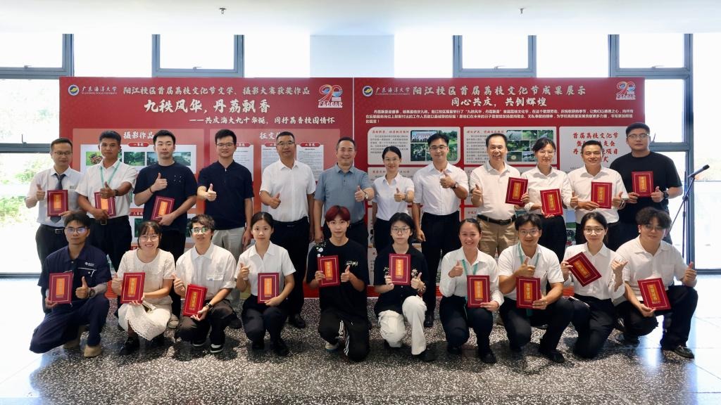九秩风华,丹荔飘香。6月25日下午,阳江校区首届荔枝文化节闭幕式暨文学、摄影比赛颁奖典礼在海纳楼1楼南侧大厅隆重举行。阳江校区党委副书记麦冬宁,校区管理办公室副主任、综合事务部部长张家荣,后勤服务部部长祝敏丹、副部长阮智晖,湛江海大校园服务有限公司阳江分公司负责人林华凯以及获奖师生齐聚一堂,共同见证这场艺术与劳动交织的成果展示会。获奖师生代表分别做了获奖感言,分享了创作过程中的灵感与感悟,表达了对...