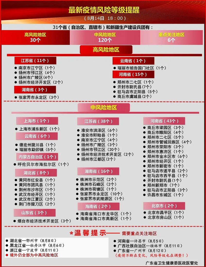 二、减少师生跨区流动。所有师生在开学前14天内务必返回家庭所在地,开展自我健康监测和管理,并坚持每日健康打卡。所有学生未接到返校通知不得提前返校。阳江校区留校师生非必要不出境、非必要不出省、非必要不离阳,不前往中高风险地区。暑假期间,非必要不得组织省外研学、交流和培训等活动,原计划组织离阳离粤的活动,尚未出行的原则上取消。