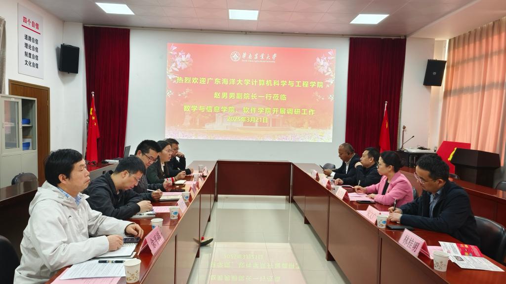 调研团队先后走访了华南农业大学、广东工业大学、广东技术师范大学等高校的计算机相关学院,围绕学科发展、科研创新、人才培养等主题展开深入交流。在座谈会上,双方就高水平学科平台建设、科研团队培育、交叉学科融合等议题交换意见,并针对人工智能、大数据、海洋信息技术等前沿领域的研究方向展开探讨。华南农业大学数学与信息学院、软件学院分享了其在国家一流专业、产学研一体化机制等方面的实践经验,为欧冠学科发展提供了有益参考。学院副院长赵男男表示:“通过校际联动,我们进一步明确了服务海洋强国战略的特色发展路径,未来将依托学科优势,深化与兄弟院校的科研协作与资源共享。”