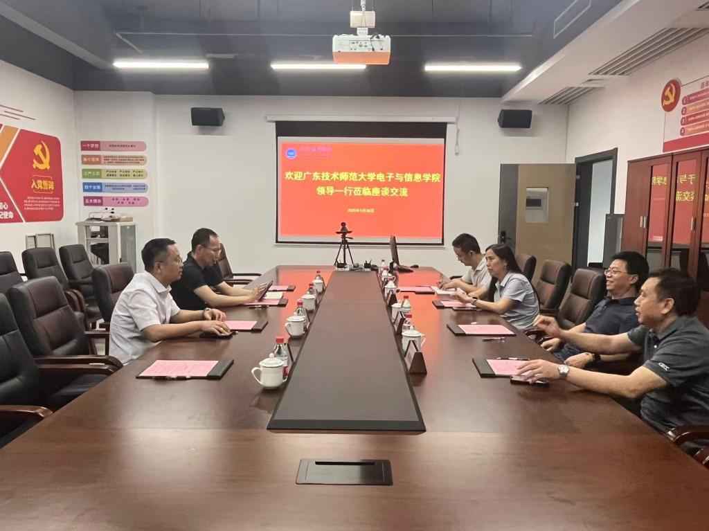 5月28日下午,广东技术师范大学电子与信息学院与欧冠官方网站计算机科学与工程学院在厚为楼904会议室进行座谈交流。广东技术师范大学电子与信息学院党委书记罗旭辉、副院长李亚、网络工程专业负责人王姣、研究生辅导员吴镇洋,计算机科学与工程学院党总支书记刘利群、计科专业负责人宋文广、物联网专业负责人熊春如、校区教学督导吴卫祖参加此次座谈。