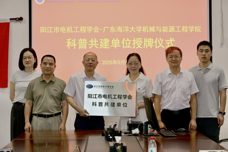 为进一步做好阳江能源电力等领域科普工作,聚焦科普资源共建共享,助推阳江科普事业的蓬勃发展,阳江市电机工程学会在全国科技活动周和第9个全国科技工作者日期间,走访慰问了机械与能源工程学院的科技工作者们,并向学院授予阳江市电机工程学会“科普共建单位”荣誉牌匾和“理事单位”聘书。
