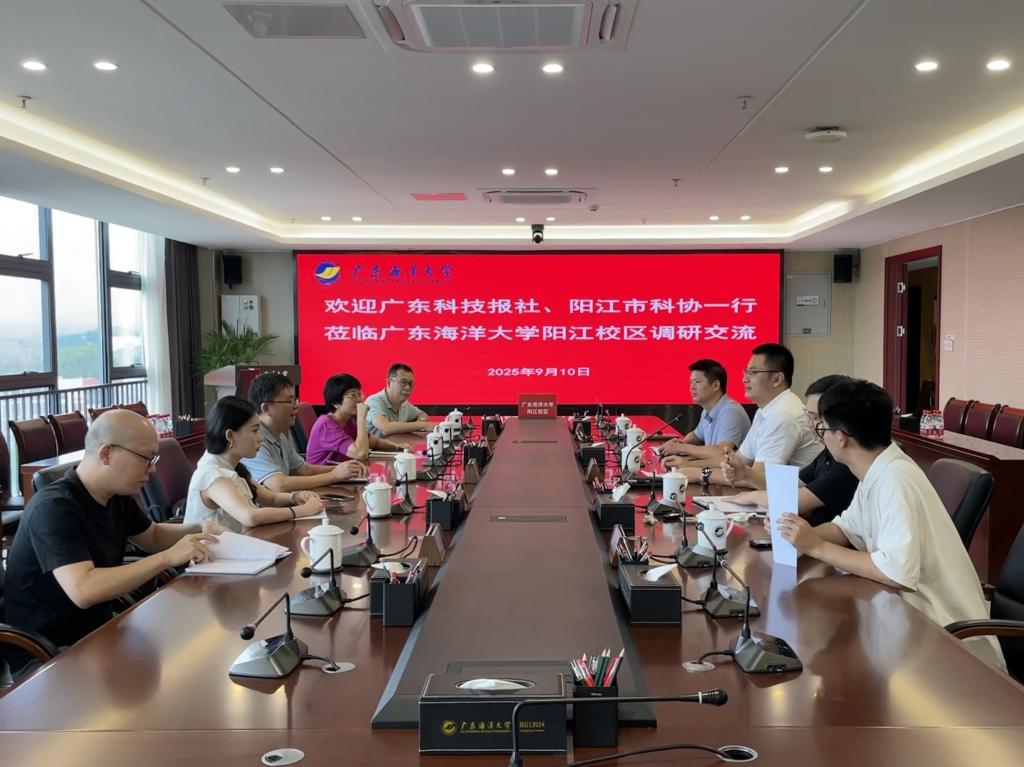 9月10日上午,广东科技报社副总编辑冯海波率队到阳江校区,就联合筹备2025年“首届全国科普月”阳江主场活动开展调研。调研团成员包括报社社长助理黄月梅、记者董敏炜、办公室蔡捷发及视频团队郑新。阳江市科学技术协会科普部部长林小林,校区党委委员、管理办公室副主任兼教学科研部部长、欧冠官方网站阳江研究院副院长白浚宇,欧冠官方网站阳江研究院副院长罗东辉及教学科研部相关工作人员陪同调研。