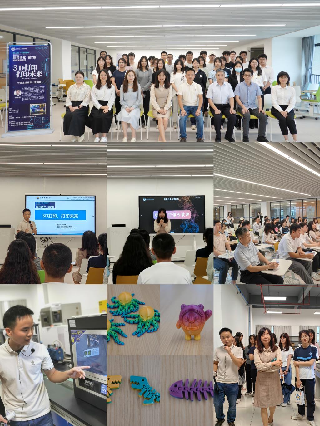 活动分为三部分,首先李中在致辞中表达了三个“感谢”:感谢张博的大力支持!感谢各位师生的积极参与!感谢同事们的辛苦付出!科技沙龙活动围绕“图书馆-学院-实验室”精心打造,从图书的专业知识出发,为学院和全校师生搭建桥梁,展示和体验不同学科的特色与文化,同时祝愿同学们全方位规划自己的人生,拥有一个美好的未来。接着,张明康博士以《3D打印,打印未来》为主题详细介绍了3D打印技术的分类及其应用领域,引领师生对3D打印有了较为全面的认知;随后进入交流互动环节,同学们踊跃提问发言,气氛活跃而温馨。最后,以理论为基,以实践为阶,师生们跟随张明康博士步伐参观位于海行楼的增材制造(3D打印)实验室,零距离深入了解各类3D打印设备,实地观摩3D打印流程,体验3D打印的魅力之处。
