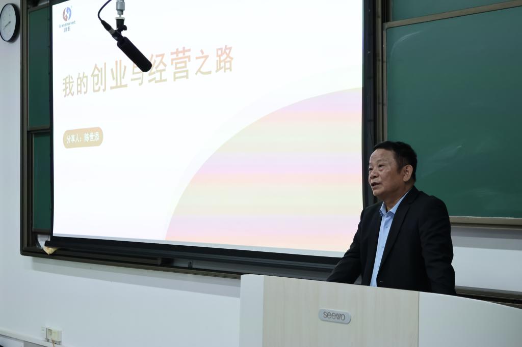 陈世添先生以《我的创业与经营之路》为题,分享了自身创业经历。讲座中,他梳理毕业生就业面临的各类问题,并鼓励学生在校期间要早筹谋、走出去,多与企业互动交流,了解真实的行业需求与市场逻辑,让专业学习和职业规划更有针对性,同时要有脚踏实地的决心,不能好高骛远,结合自身实际做好职业规划。针对如何走好创业之路,他表示,要做到思路要清、目标要明、方向要正、执行要快速灵活、效果要好,以清晰认知、坚定方向和高效行动在创业征程中稳步前行。