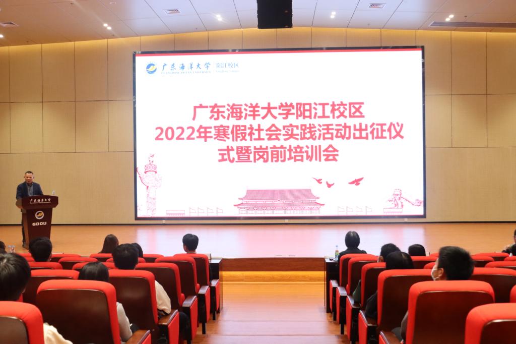 1月6日晚,校区团委在海纳楼113多功能厅举行欧冠官方网站阳江校区2022年寒假“返家乡”社会实践活动出征仪式暨岗前培训会。学生事务部部长邓朝晖,校团委副书记、后勤保障部部长袁仁广,校团委宣传科科长王梓珊,校区团委学生会干部及18支社会实践团队共100余人参加会议。学生事务部副部长翁江峰主持了会议。
