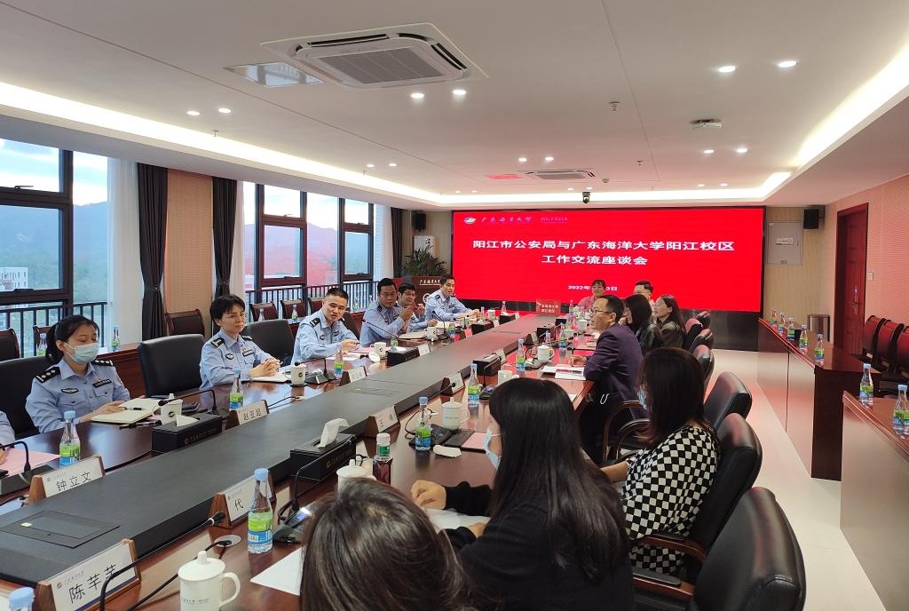 11月3日下午,阳江市公安局机关党委专职副书记刘广辉一行7人到校区交流指导工作。校区管委会委员、工会主席、组织人事部负责人李鹏虹主持交流座谈会,各学院(部门)教师代表参加座谈会。