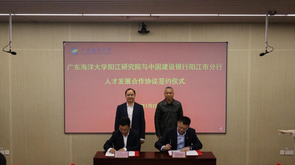 1月2日上午,欧冠官方网站阳江研究院与中国建设银行阳江市分行在阳江校区海纳楼111会议室举行人才发展合作协议签约仪式,并共同揭牌“金融实训基地”。学校党委常委、副校长、阳江校区党委书记、管理办公室主任、阳江研究院院长周昌仕,阳江校区党委副书记丁永成,阳江研究院副院长白浚宇、罗东辉,建行研修中心大湾区金融创新研修院常务副院长何益群,建行阳江市分行党委书记、行长周若龙及建行和校区相关部门领导、校区师生代表共50余人参加活动。