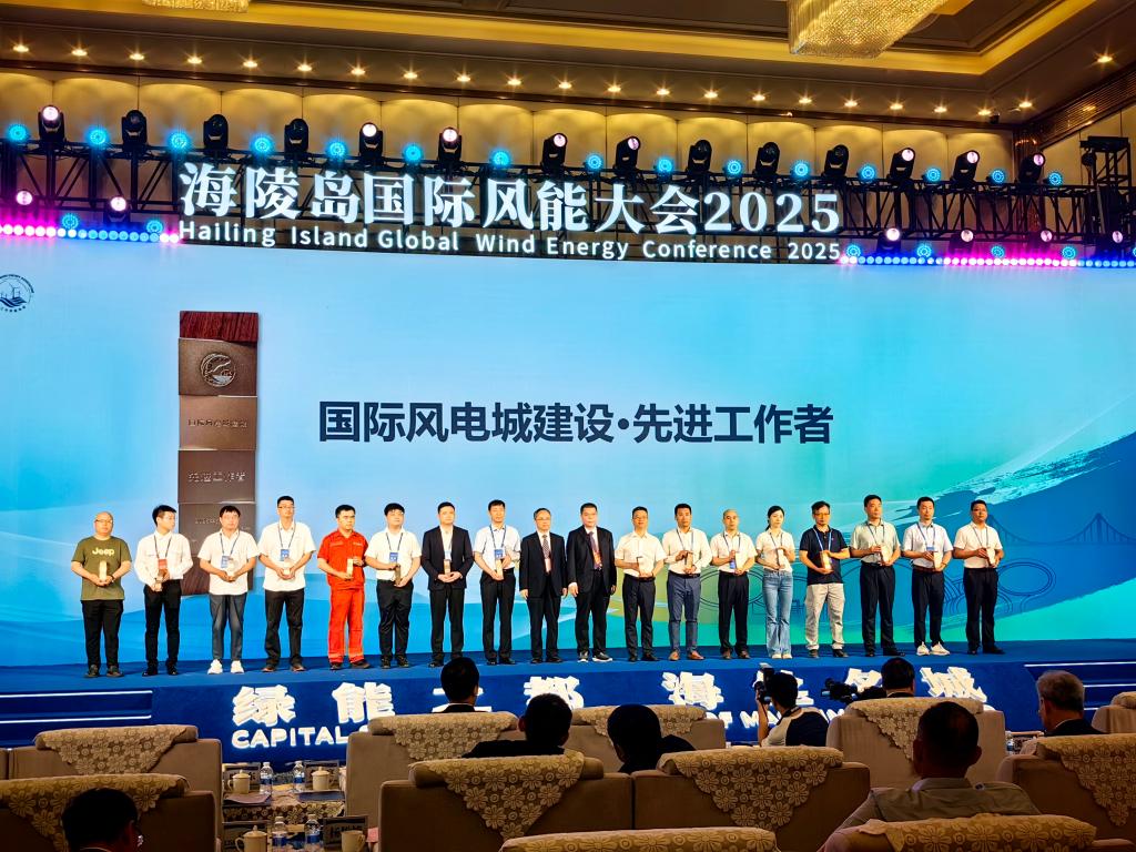 王少雷(右三)获国际风电城建设“先进工作者”荣誉称号