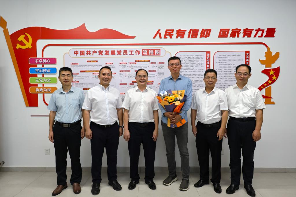 为庆祝第41个教师节,深入贯彻落实“以教育家精神铸魂强师,谱写教育强国建设华章”主题精神,9月10日上午,学校党委常委、副校长周昌仕带队走访材料科学与工程学院、食品科学与工程学院,慰问铁镝、徐丹两位教师代表,并通过他们向校区全校教职工致以节日祝福。校区党委副书记丁永成、麦冬宁陪同走访。