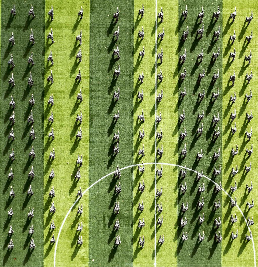 大会在雄壮的国歌声中拉开帷幕。“同学们好!”“同学们辛苦了!”杨洲在检阅方队时向教官和新生表示慰问。同学们步履铿锵、口号嘹亮、英姿飒爽,步伐中彰显着广海学子坚韧不拔、自强不息的精神风貌。军事汇报表演中,应急棍、擒敌拳、刺杀操、战术表演……,同学们动作干净利落。