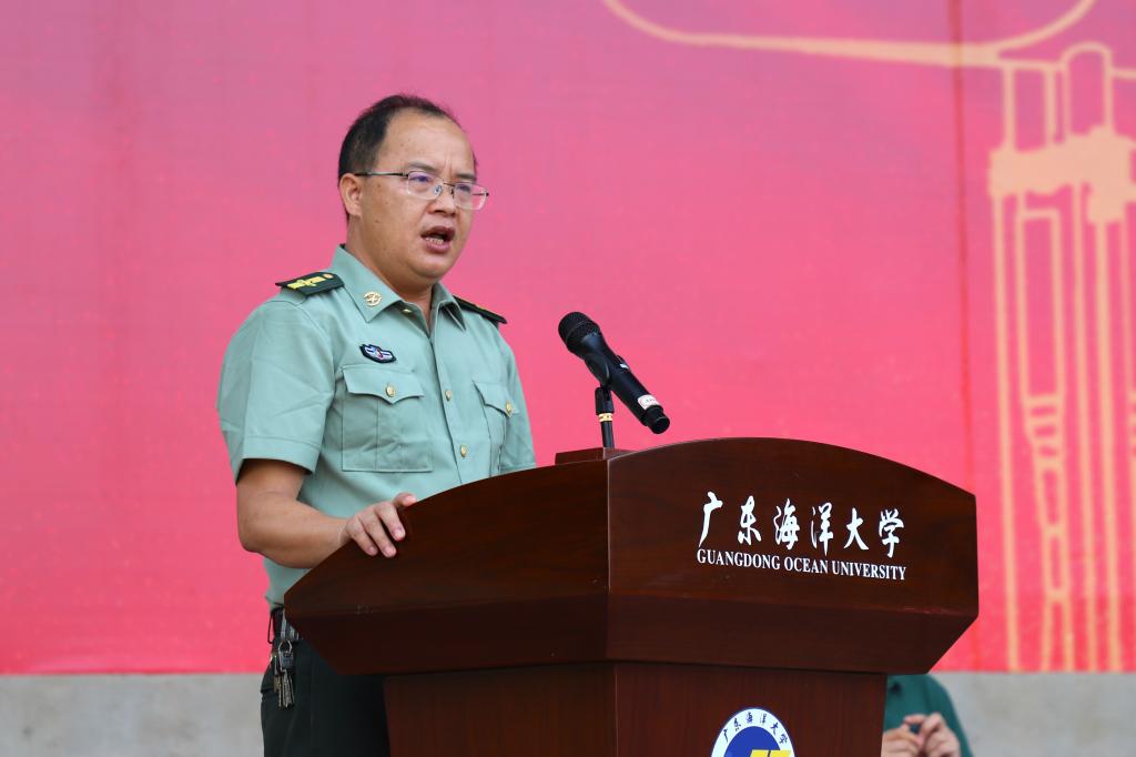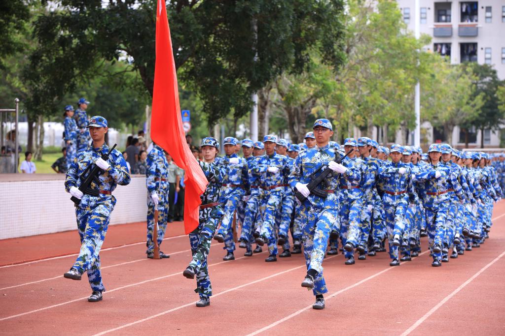 大会在雄壮的国歌声中拉开帷幕。“同学们好!”“同学们辛苦了!”宁凌在检阅方队时向教官和新生表示慰问。同学们步履铿锵、口号嘹亮、英姿飒爽,步伐中彰显着广海学子坚韧不拔、自强不息的精神风貌。军事汇报表演中,应急棍、擒敌拳、战术表演……,同学们动作干净利落。承训单位武警阳江某部首长林晓龙发表讲话,对同学们的训练成果表示充分肯定。