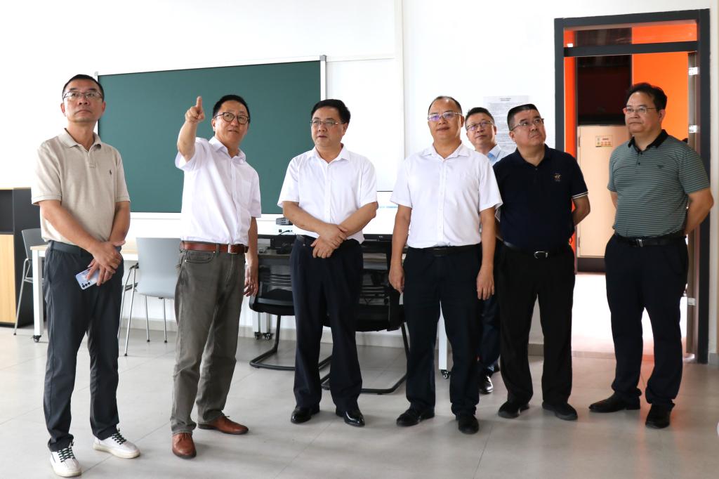 石佑启一行先后参观了位于校园内的先进能源科学与技术广东省实验室阳江分中心、食品科学与工程学院的岭南特色果蔬绿色加工产业学院以及商学院的数字旅游研究中心和数字经济与地方产业发展实验室,深入了解校区的学科建设、人才培养、师资队伍建设等。