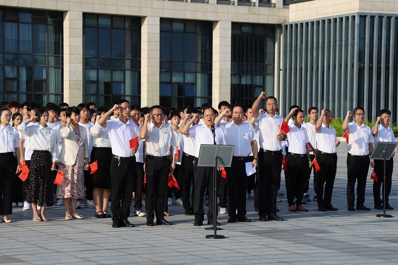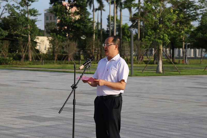 7月1日清晨,校区师生代表欢聚在锦绣广场,举行庆祝中国共产党成立102周年“七一”升旗活动。校区党委副书记、管委会常务副主任周昌仕参加活动并讲话。活动由校区党委委员、管委会副主任陈永强主持。