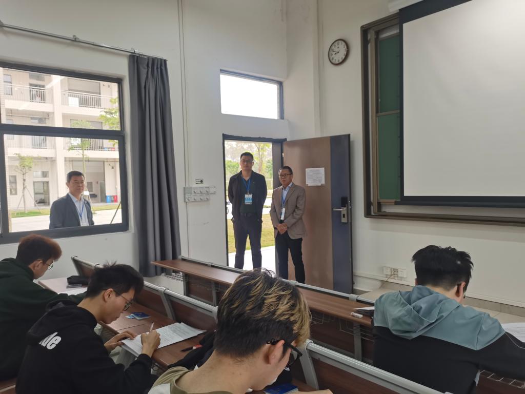 校区管委会副主任张界新、各学院领导现场巡查,教学科研部全体人员认真组织考务工作、对白天和晚上的每场考试进行检查,有力地保障了考试工作的顺利进行。考试现场监考老师认真负责,学生精神饱满、诚信应考,考场秩序井然,本次统考工作圆满收官。