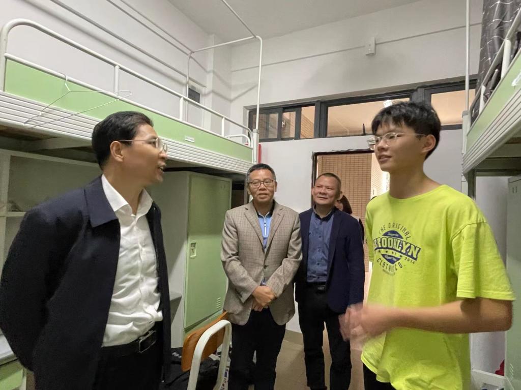 12月10日下午,学校党委副书记林晓敏走访学生宿舍慰问学生。阳江校区管理委员会副主任张界新,学生事务部第二负责人翁江峰以及学院辅导员代表陪同走访。