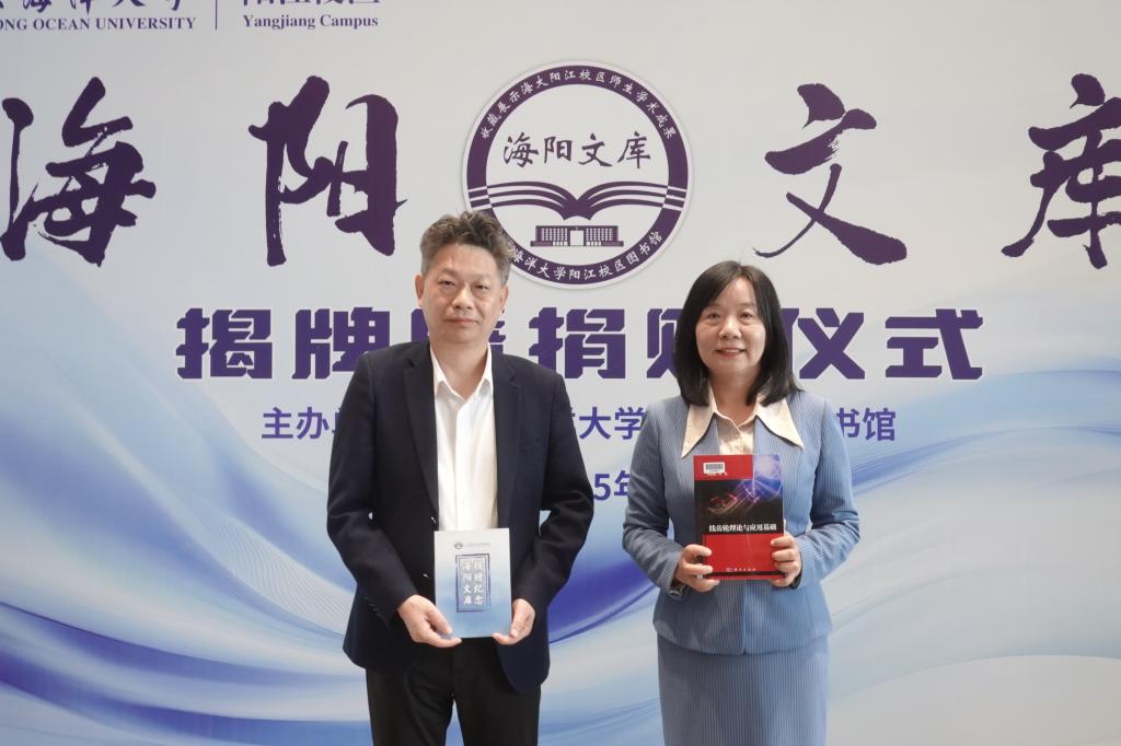 11月18日下午,阳江校区图书馆在图书馆(海纳楼)一楼大厅举行海阳文库揭牌暨捐赠仪式。学校党委常委、副校长、阳江校区党委书记、管理办公室主任周昌仕出席活动并致辞,校区党委副书记麦冬宁,机械与能源工程学院院长陈扬枝,商学院院长李力,计算机科学与工程学院教授林耀庭,校区各单位领导,教师代表等70人出席活动。校区图书馆馆长李中主持仪式。
