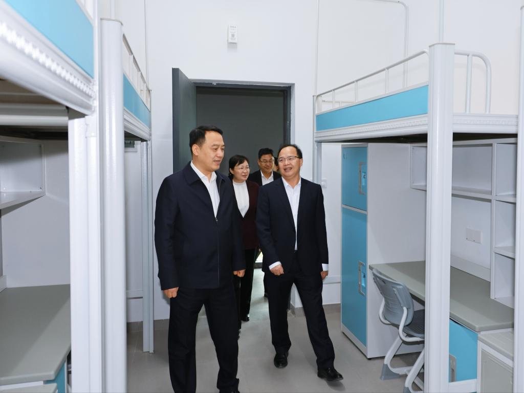 余金富深入阳江校区新建宿舍楼、“一站式”学生社区和丹荔亭,详细察看了解宿舍、学生社区和校园景观项目建设情况,并调研学校意识形态工作。在随后的思政课上,余金富认真听取学校教育教学工作情况汇报和师生代表发言,并为大家宣讲党的二十届四中全会精神。