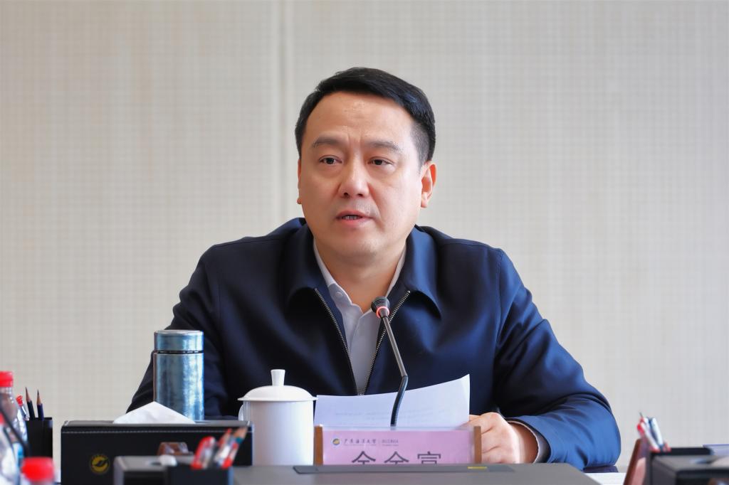 11月20日上午,阳江市委副书记、市长余金富到阳江校区调研意识形态工作,并为师生代表讲授思政课,宣讲党的二十届四中全会精神,勉励广大师生厚植家国情怀,找准城市发展和个人成长的结合点,在助力阳江高质量发展中更好实现自我价值。学校党委常委、副校长周昌仕,阳江市副市长柯燕参加活动。