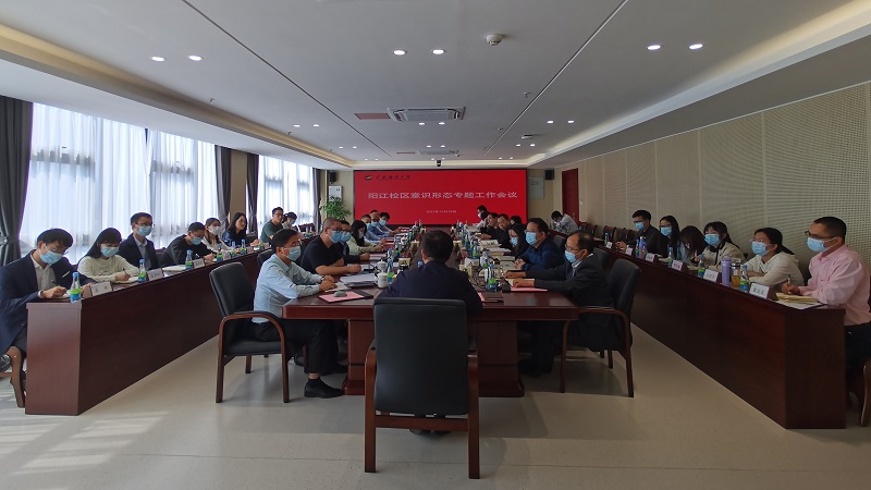 为深入学习宣传贯彻党的十九届六中全会精神,贯彻落实习近平总书记关于意识形态工作的重要论述精神,进一步加强和改进阳江校区宣传思想工作, 11月19日,副校长刘东超带领党委宣传部部分干部前往阳江校区调研指导工作,主持召开校区意识形态工作专题会议。党委宣传部常务副部长欧卫军,阳江校区党委副书记、管委会常务副主任周昌仕以及管委会其他班子成员、各教学单位党组织负责人、各行政部门第一负责人、各单位部门通讯员以及学校党委宣传部部分干部参加会议。