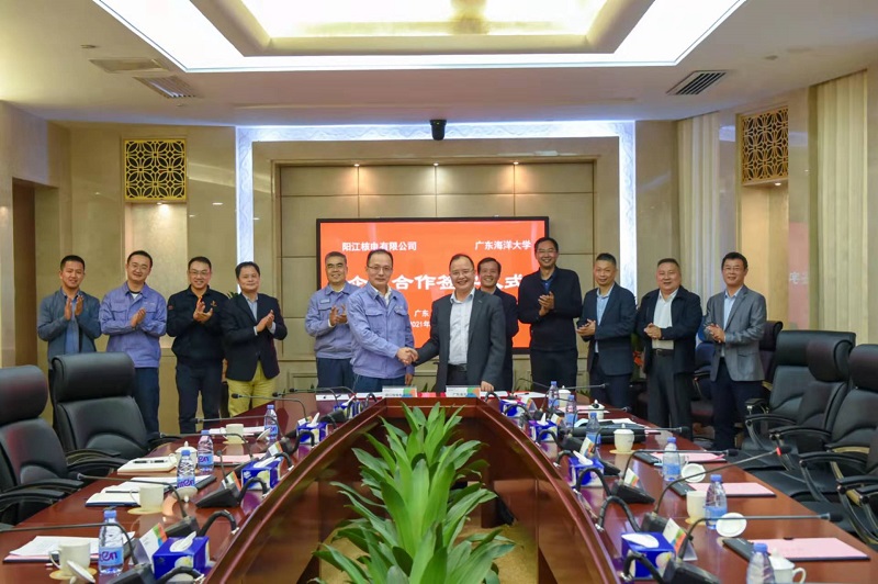 签约活动上,陈伟仲代表阳江核电欢迎潘新祥校长一行并介绍了公司的发展历史及安全生产业绩。陈伟仲表示,阳江核电是阳江市的“一号工程”,立足粤西,为粤港澳大湾区能源结构调整、广东电力保供和地方经济社会发展做出贡献。欧冠官方网站作为我国海洋学科类重点院校,历史悠久,在海洋科学领域实力雄厚,成果丰硕。阳江核电愿与同处粤西的欧冠官方网站在技术、人才培养等方面加强交流和合作。目前,各核电厂面临海洋生态环境变化的问题,海洋大学可以发挥专长,在电厂冷源安全保障、海洋设备防腐等课题方面,开展研究,帮助企业解决实际问题。